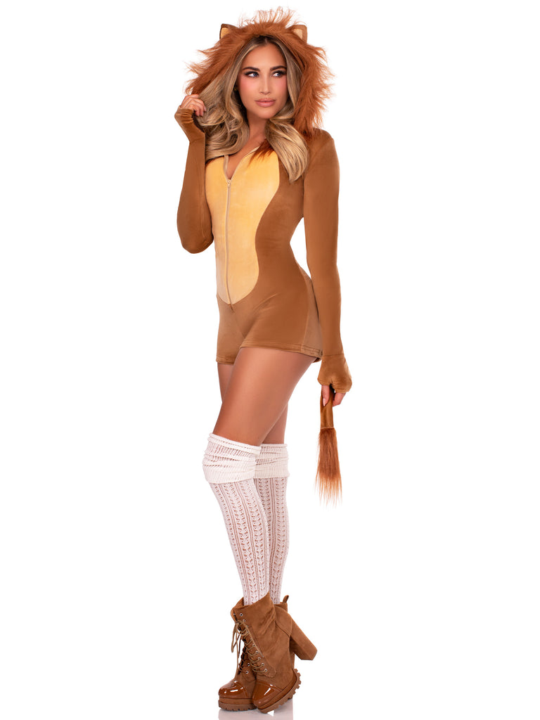 1 PC Comfy Lion Costume, Includes Ultra-Soft Velvet Plush Gloved Romper with Tail and Mane Hood