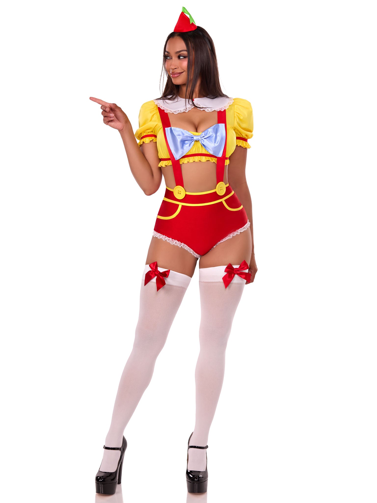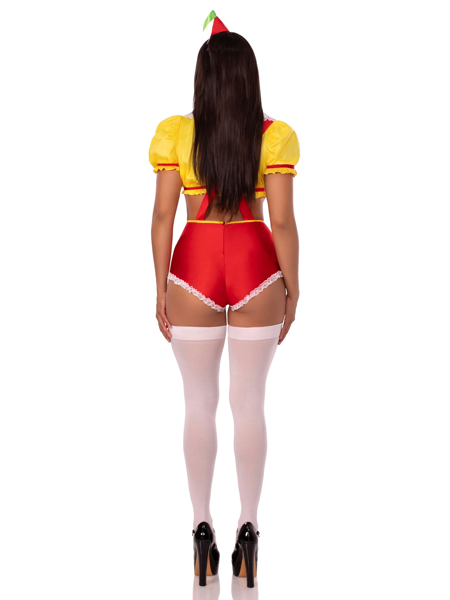 3 PC Double Trouble Darling Costume, Includes Crop Top with Peter Pan Collar, Suspender Shorts with Bow Accent, and Hat Headband