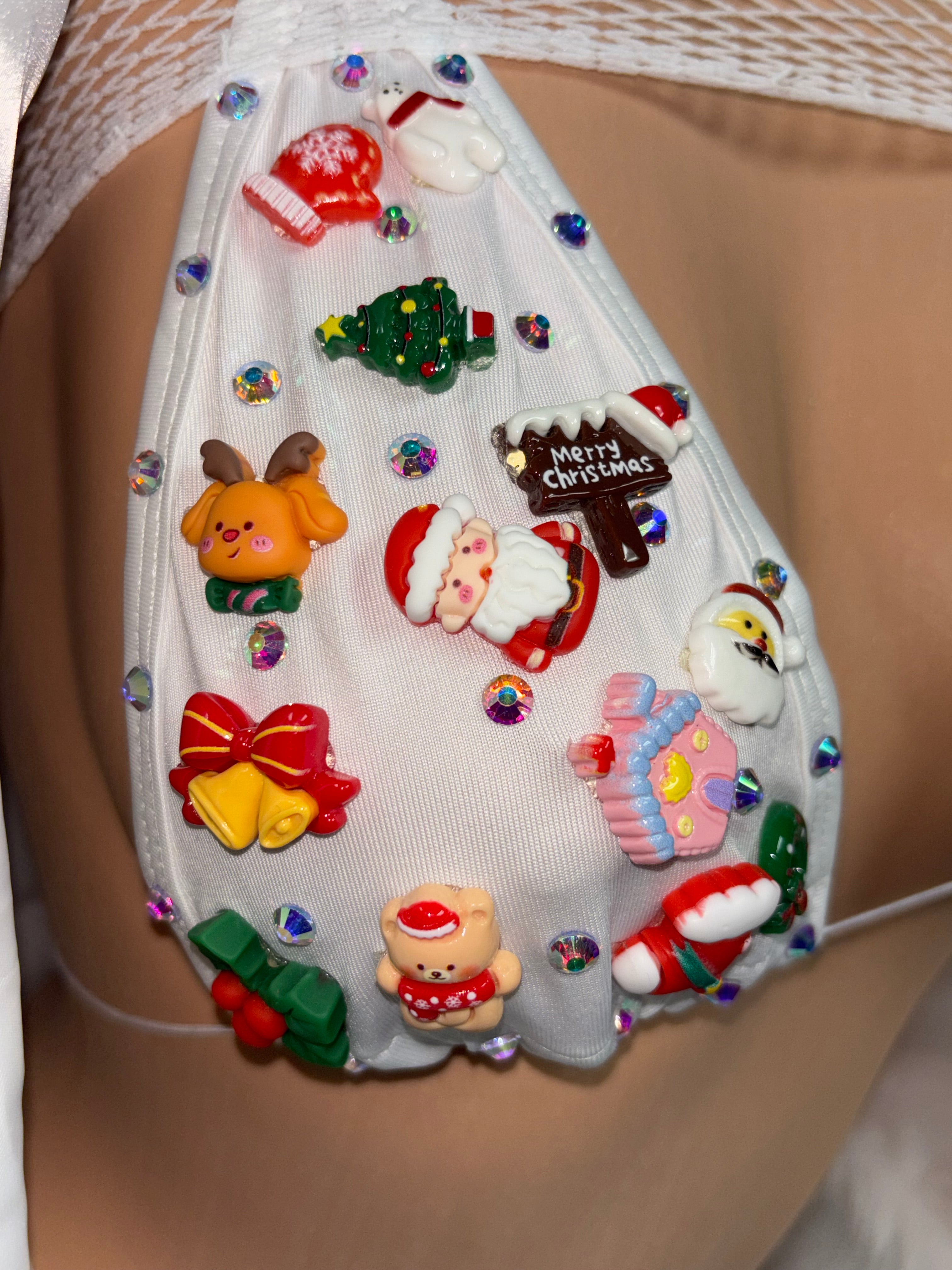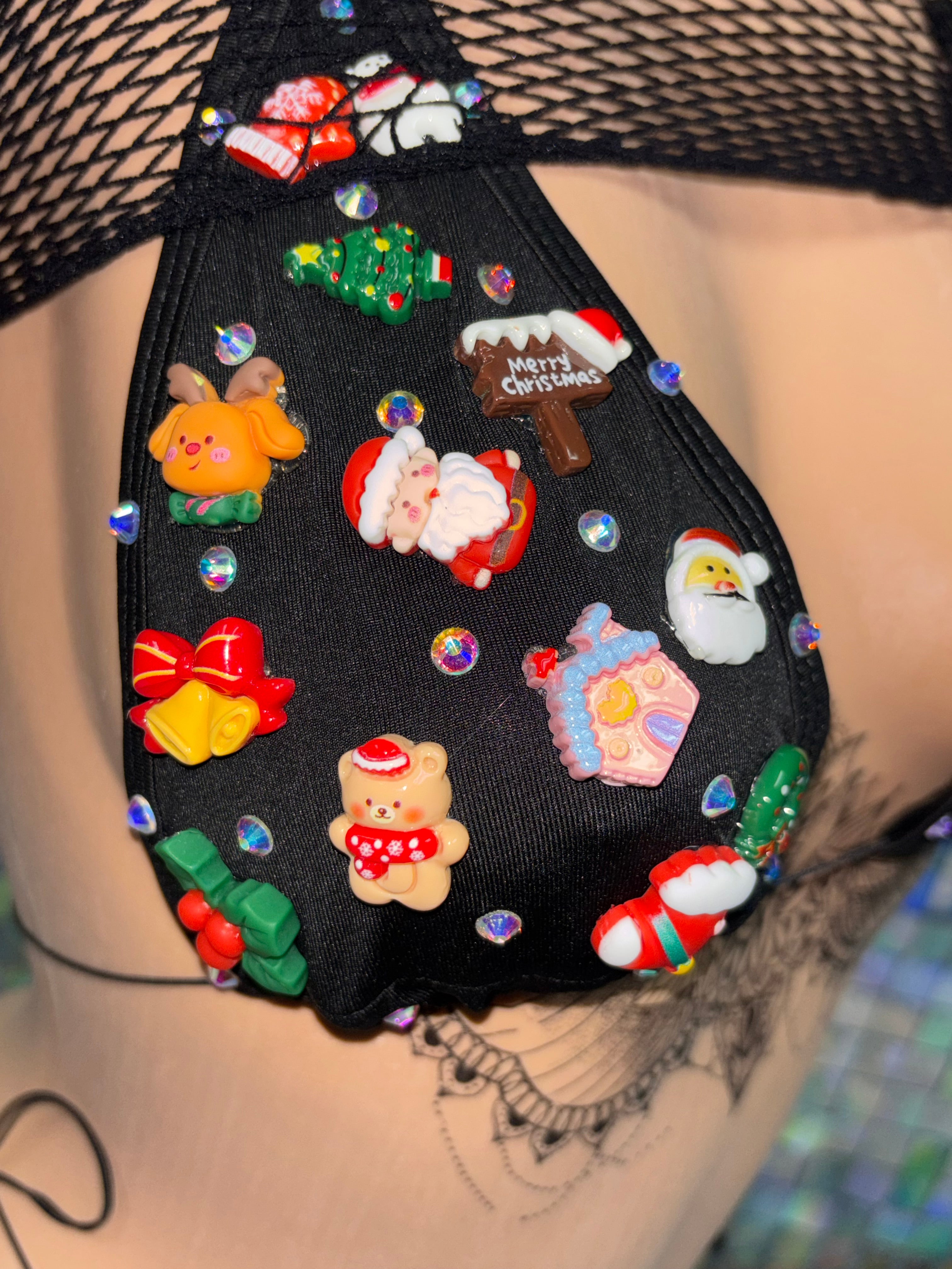 This exclusive set features a shimmering mesh overlay, holiday-themed print, and rhinestone accents that sparkle under stage lights or festival LEDs.