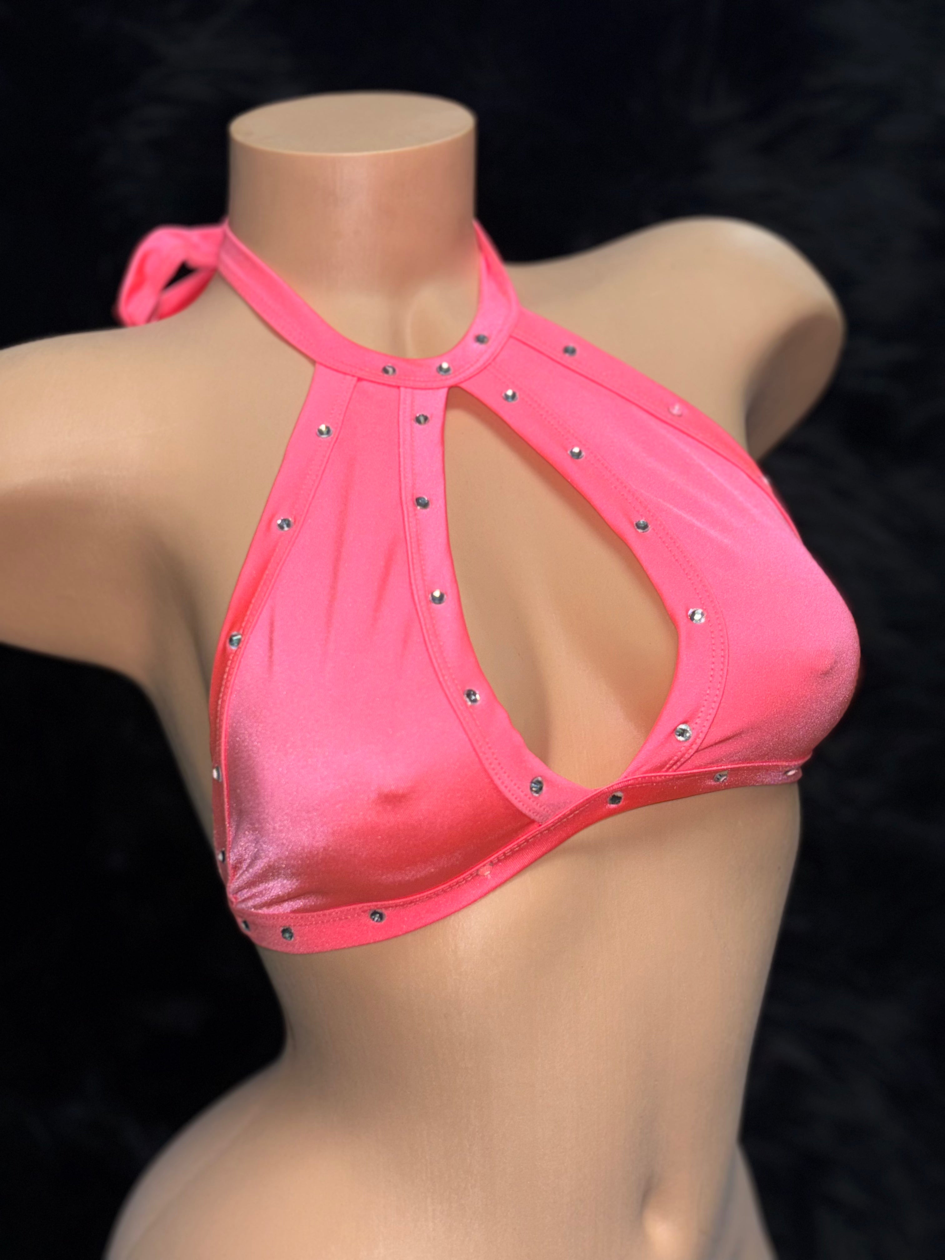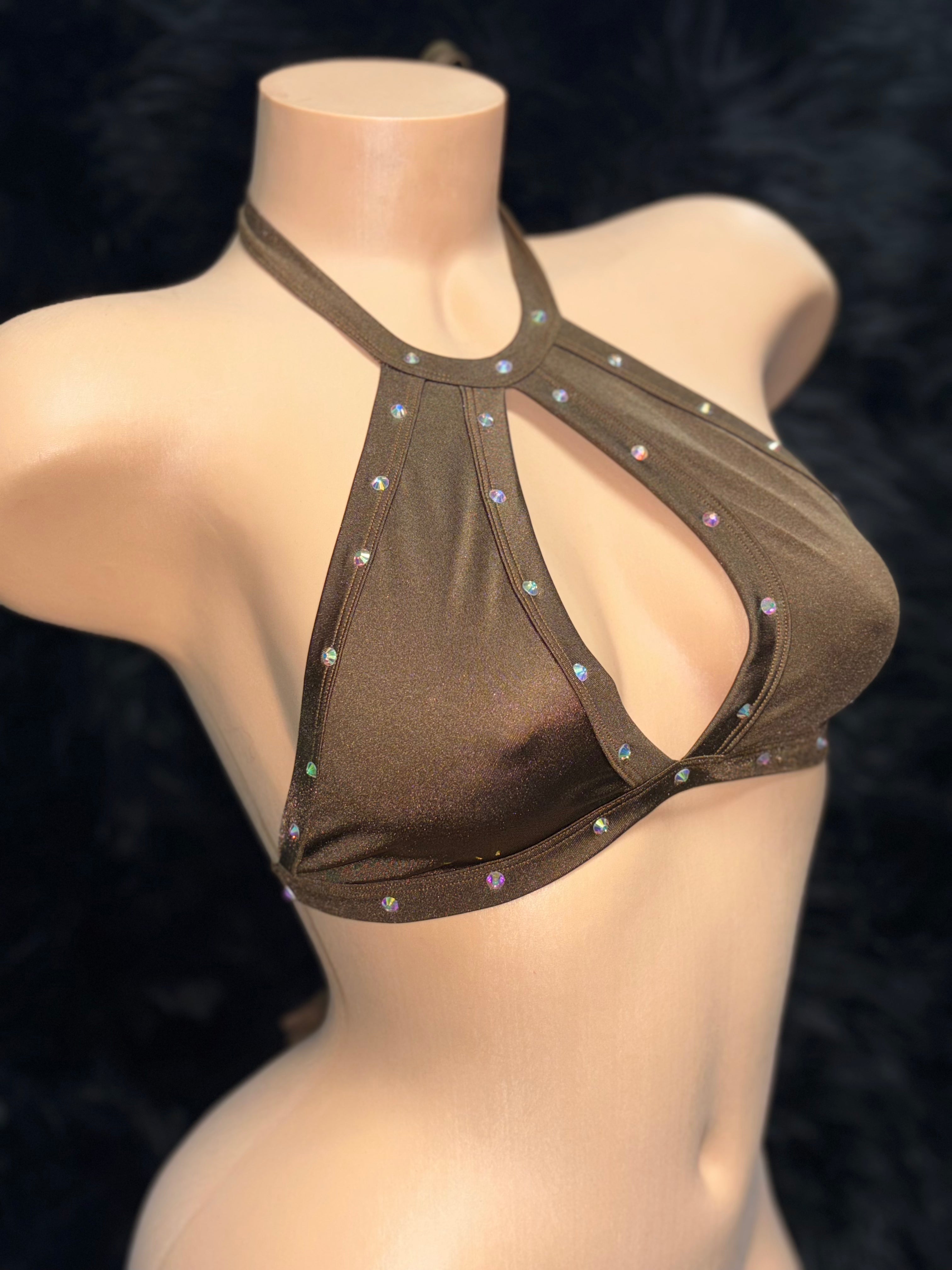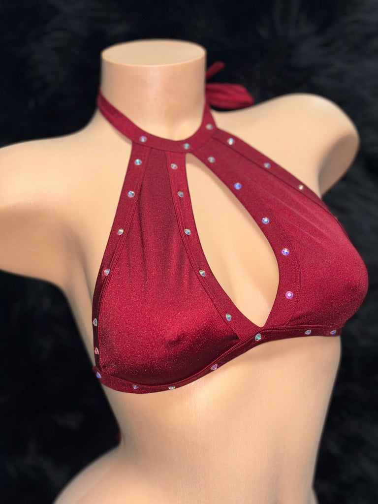 Keyhole Halter Top w/ Rhinestones