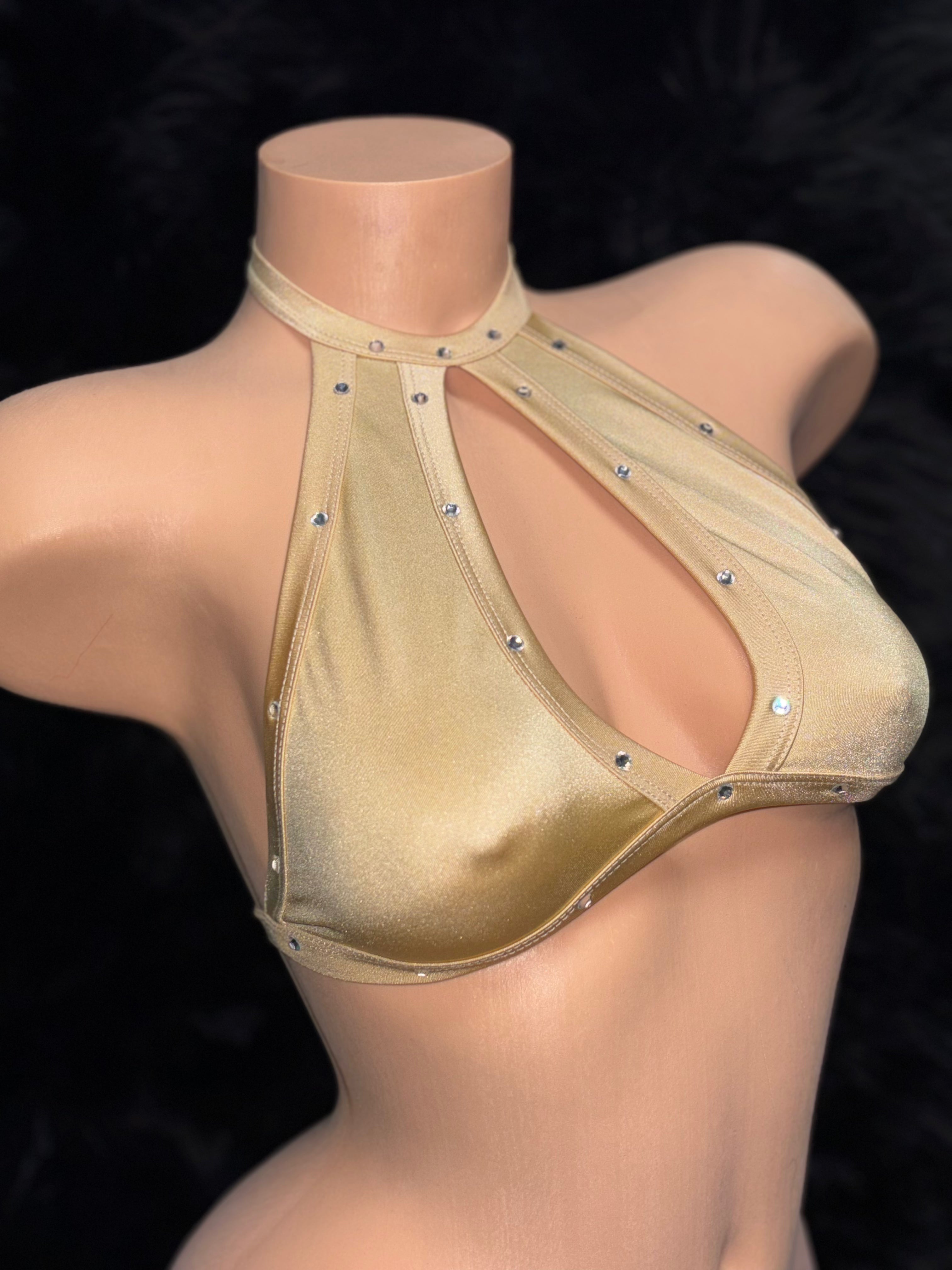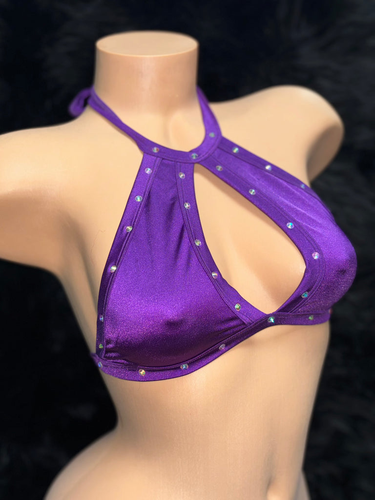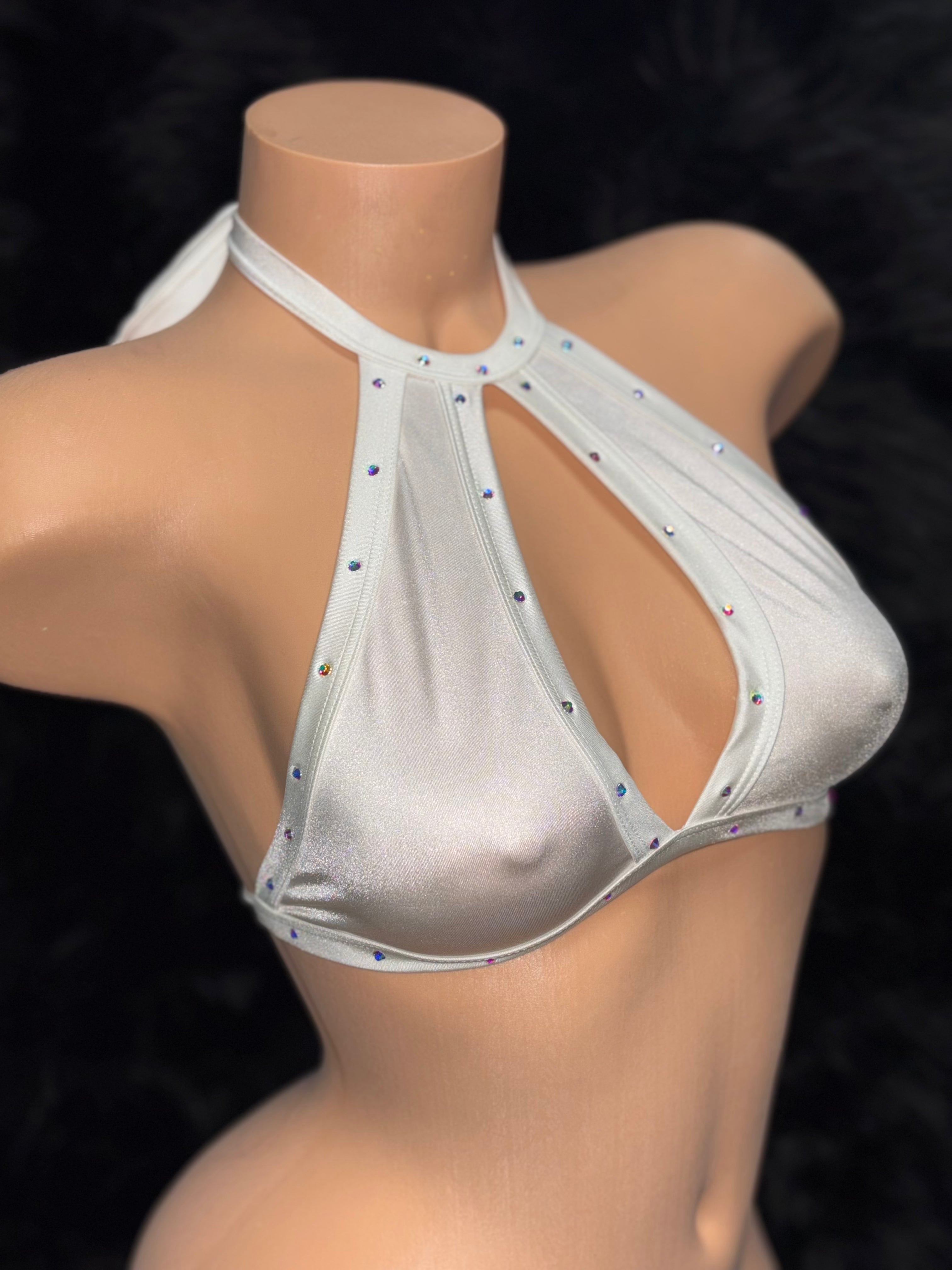 Keyhole Halter Top w/ Rhinestones