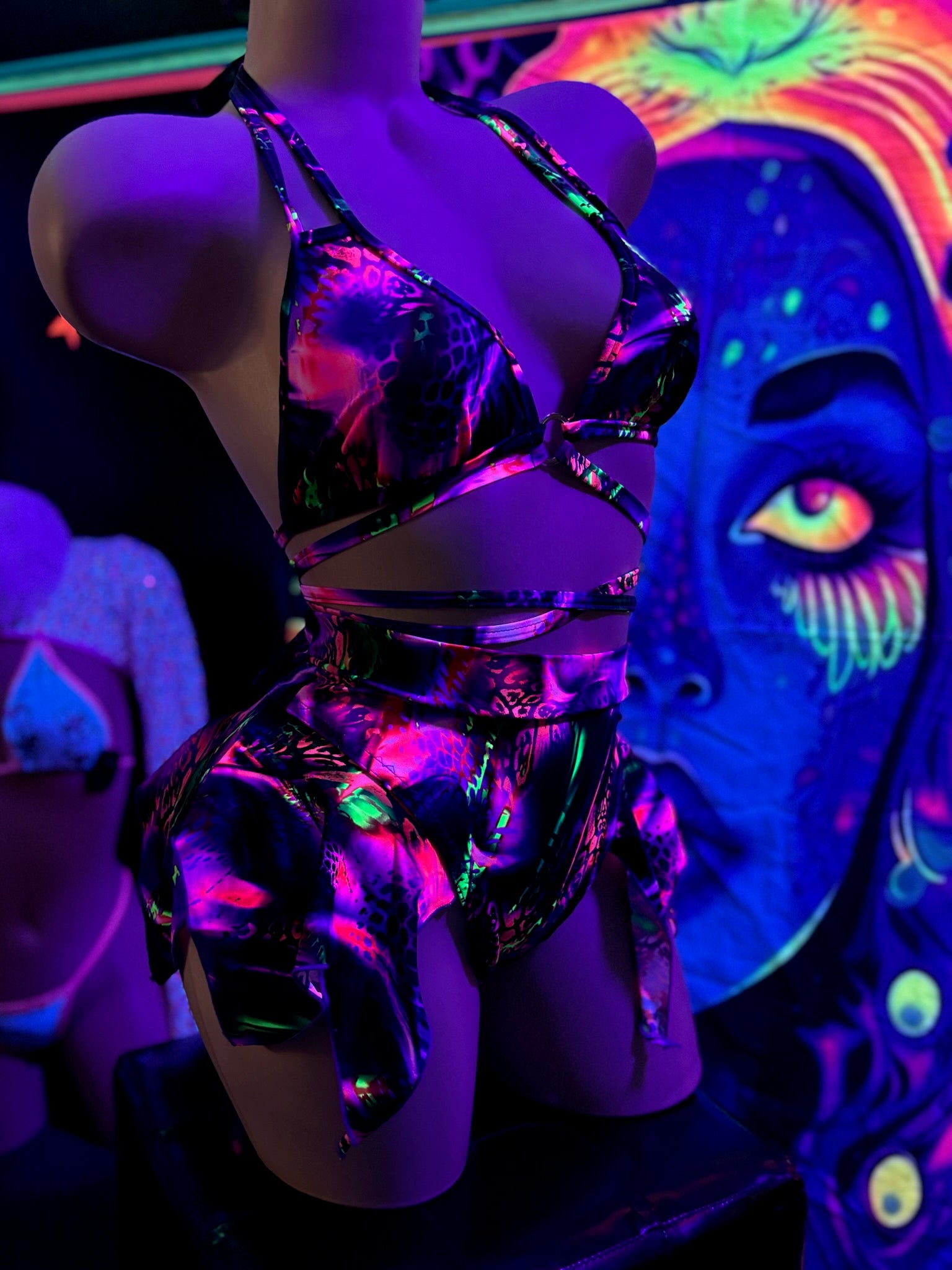 Crafted with vibrant, UV-reactive colors that glow under black light, this show-stopping piece brings serious energy to any festival or rave!