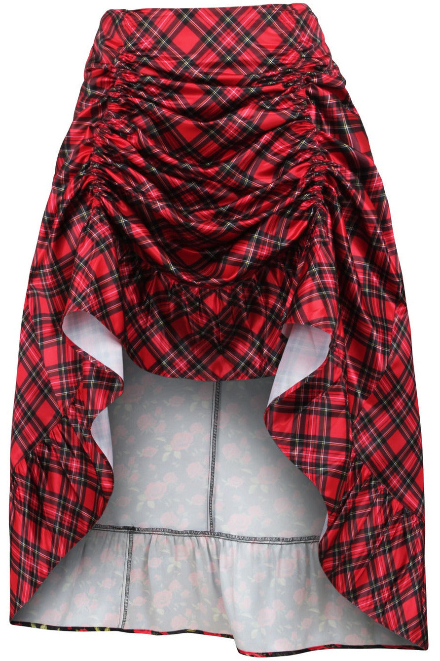 Red Plaid Satin Adjustable High Low Skirt - 34" Long