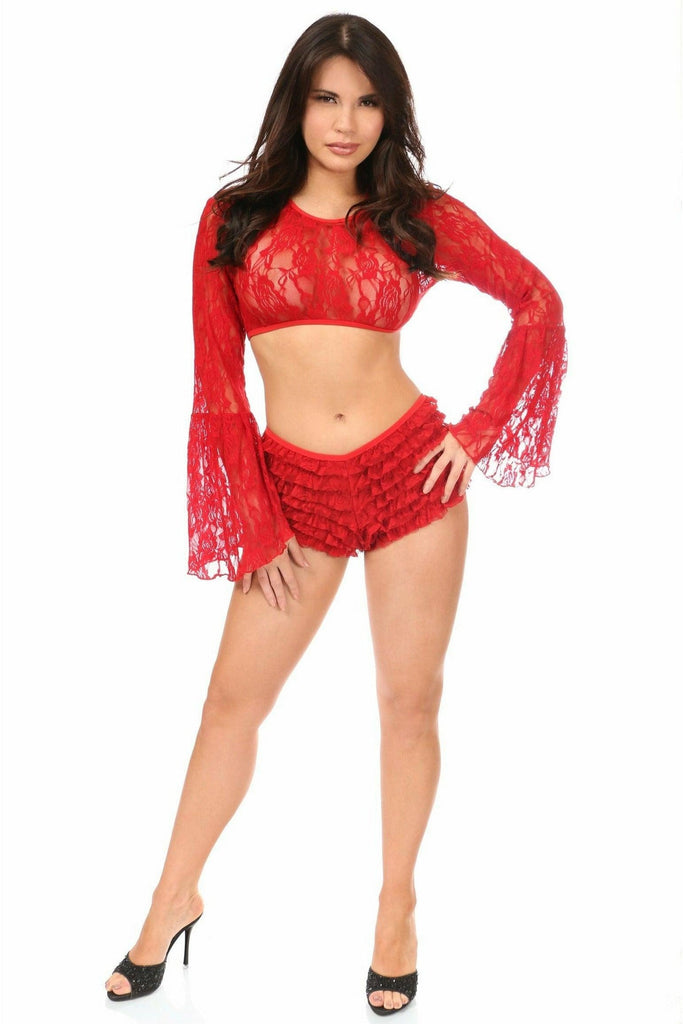 Red Sheer Lace Bell Sleeve Peasant Top